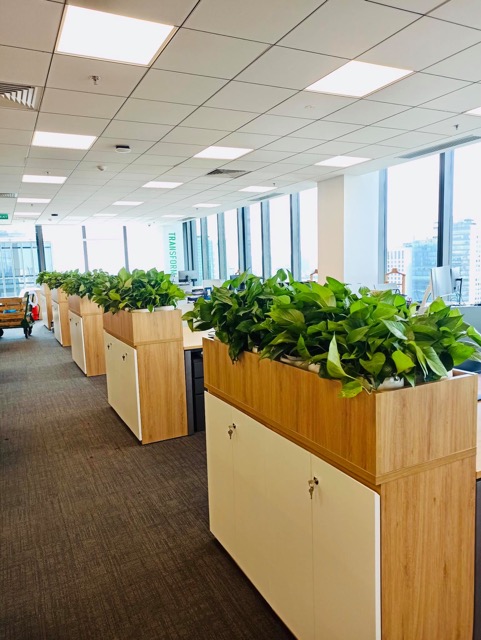 Trong môi trường công sở hiện đại, cây trầu bà được sử dụng linh hoạt ở nhiều vị trí: