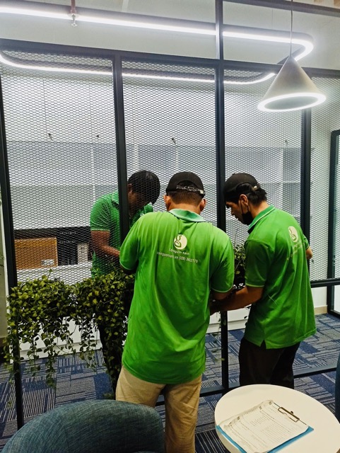Sau khi thống nhất phương án, cây xanh được lắp đặt tại văn phòng. Dịch vụ bảo dưỡng định kỳ bao gồm tưới nước, bón phân, và thay cây khi cần thiết.