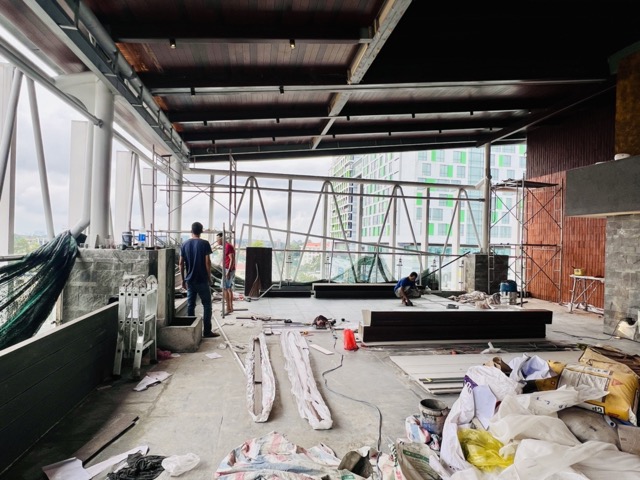 - Vệ sinh và xử lý chống thấm sân thượng.