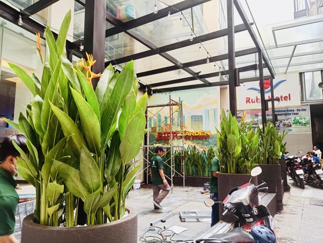 Dự án thi công trồng cây sân vườn cho Nhà hàng Bier Garden tại Phường Sài Gòn, TP.HCM là một minh chứng cho việc mảng xanh có thể biến không gian bình thường trở nên ấn tượng và hút khách hơn rất nhiều. Sự kết hợp giữa chuối mỏ két Thái và chậu composite đen đã tạo ra một tổng thể hài hòa, hiện đại và đậm chất tropical.