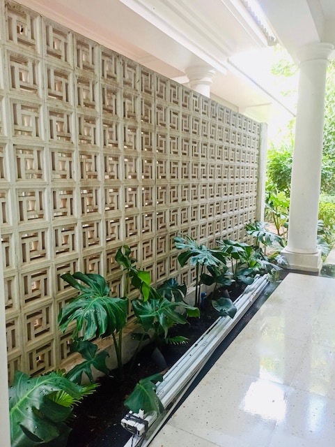 Với đặc trưng cây lá to, hoa rực rỡ, sỏi trắng, và ghế nghỉ, không gian trở nên sinh động, tươi mới, gần gũi nhưng vẫn sang trọng.