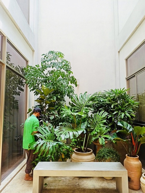 Ngoài sân vườn, khu vực nội thất biệt thự cũng cần được điểm tô bởi những loại cây xanh nhỏ gọn, tinh tế. Cây bàng Singapore, cây lưỡi hổ hay cây kim ngân là những loại cây cảnh phổ biến, không chỉ giúp thanh lọc không khí mà còn tạo nên sự hài hòa trong không gian sống.